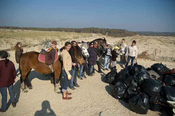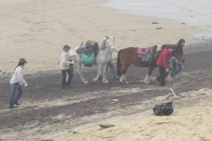 La première contribution de l’association a été un franc succès, le samedi 22 mars 2008, nous avions mis à disposition un seul cheval qui a parfaitement rempli son rôle et a ramené les énormes sacs depuis la plage jusque en haut de la dune, économisant ainsi les forces des « ramasseurs ».