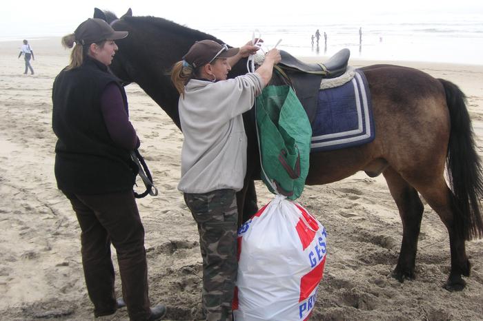 Un bilan très satisfaisant, avec plusieurs dizaines de sacs ramenés au parking par les chevaux et poneys, plusieurs centaines de kilos de déchets qui ont ainsi été enlevés des plages et des dunes, une journée splendide et épuisante dont on se souviendra longtemps… ne serait-ce par les courbatures qui vont nous ont poursuivies la semaine suivante!