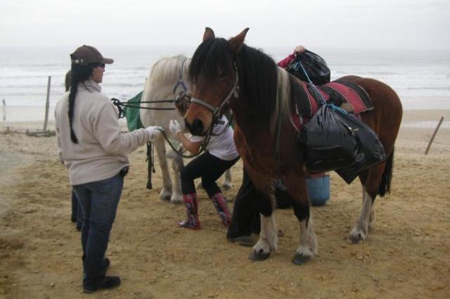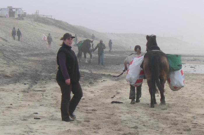 Les chevaux font le relais entre les bénévoles qui ramassent partout sur les plages et les bennes à ordures, situées en bordure de plage.