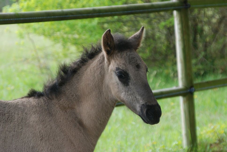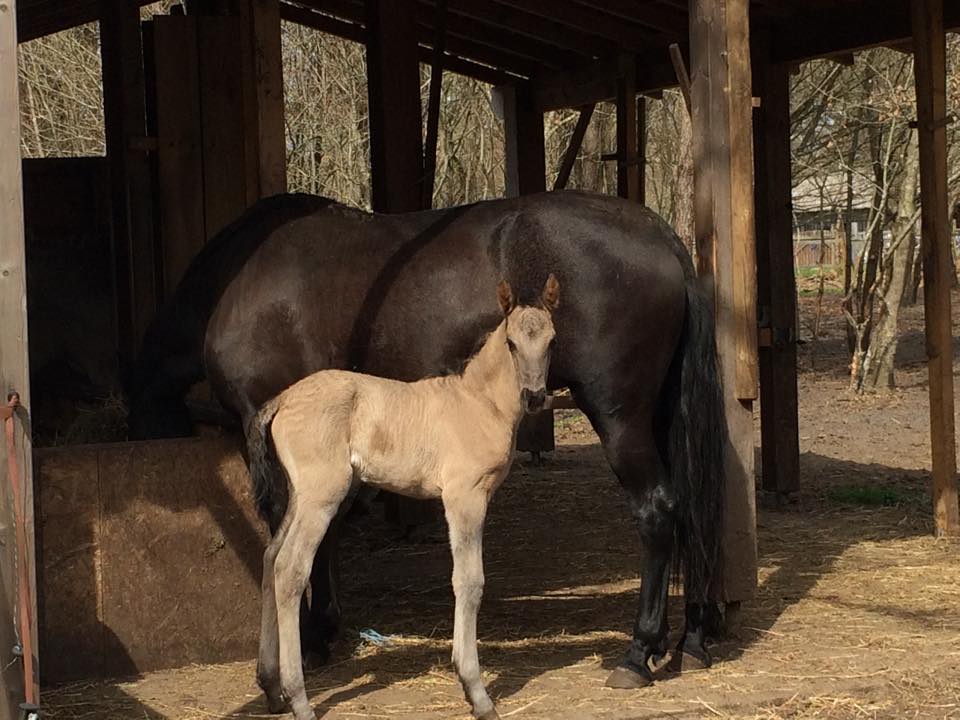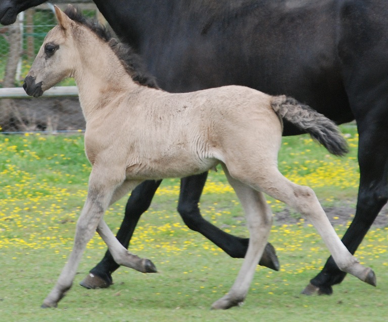 Faisca Sol Real est née le 7 avril 2015 à 14h30. Elle est la fille de Dové, Sorraia PP de couleur grullo, homozygote dun et de Camela del Recuerdo PRE PP apta, de couleur noire.