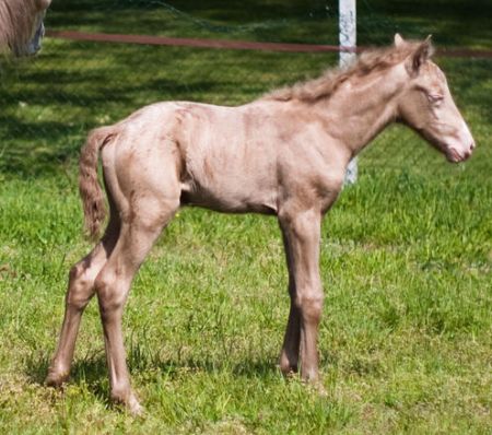 Il est perlino, une analyse génétique confirmera sa couleur.