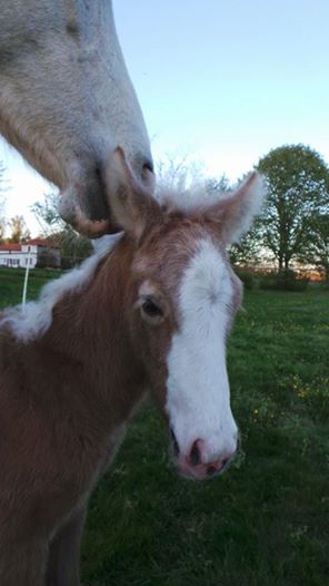 Elle est née à la maison le 8 avril 2014. Elevée en troupeau, elle est manipulée et bénéficie de tout ce dont a besoin un poulain.