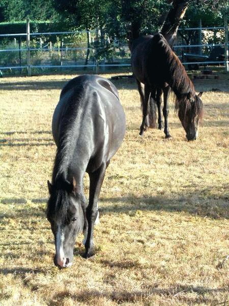 Le SEUL aliment complet qui existe pour les chevaux (contrairement à ce qui est écrit sur certains paquets de granulés qui en fait ne sont pas complets) est l’HERBE. Si l’on ne dispose pas d’un pré, l’alimentation de base doit être composée essentiellement de foin complémentée de façon à assurer les apports nécessaires.