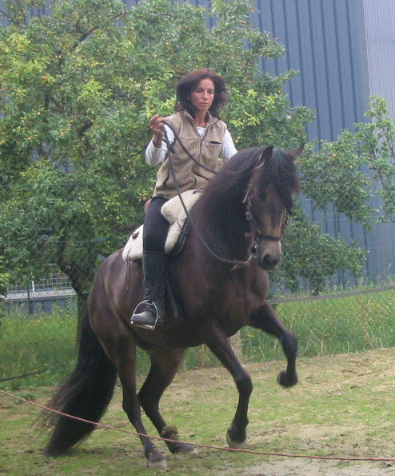 Mais c’est un travail long et peu encourageant pour le cavalier qui mettra au moins 1 an (à raison d’une visite quotidienne minimale) avant d’établir une relation suffisante pour régler les allures en liberté avant d’obtenir un semblant de ramené monté.