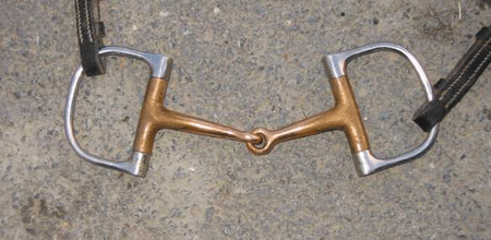 – l’acier (inoxydable ou non) : c’est le matériau le plus courant. – le cuivre : certains se sont aperçus que le cheval qui était détendu dans sa bouche avait tendance à machouiller et à saliver un peu. Ils se sont donc dit que pour faire se détendre un cheval, il n’y avait qu’à le faire saliver mécaniquement (ce que fait le cuivre)… A mon humble avis, c’est un pur sophisme… – le caoutchouc ou la résine : ces matériaux sont intéressants pour les chevaux allergiques au métal ou l’hiver quand le métal est trop froid.