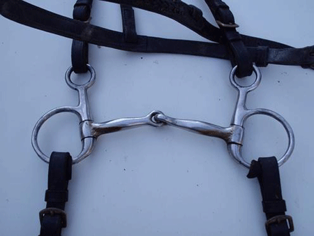 Le mors brisé peut entraîner une gêne au niveau du palais, mais ce qui est caractéristique, c’est l’effet “casse-noisette” et toute action de main engendre une pression du canon sur les barres (ici, c’est un mors olive qui est représenté).