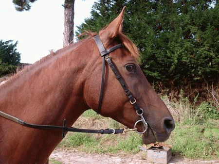 [Nota: Remarque judicieuse d’un lecteur que je retranscris directement ici: « Pour les chevaux qui présentent une langue plus épaisse ou l’auge étroite, voir les deux à la fois, la pression exercée sur leur langue les dérangent fortement (pour ne pas dire les fait souffrir) et cela est également une source de désordre et notamment à l’origine du passage de la langue au-dessus du mors si la voûte du palais le permet, sinon il la passe sur le côté de temps en temps puis de manière continue. Dans ces cas-là, il est préférable d’utiliser un mors avec passage de langue »]