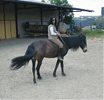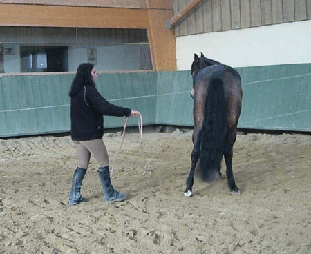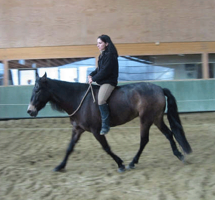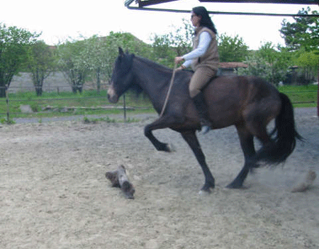 Cet exercice est surtout utile pour le cavalier et n’amène, à mon avis, pas grand chose dans l’éducation du cheval. En effet, même quand on monte rênes longues, on ne se rend pas compte de ce qu’il faut réellement faire pour faire tourner un cheval par exemple. Là , la position, l’assiette, le poids du corps prennent tout leur sens. Ainsi, on peut vraiment comprendre les attitudes justes que l’on doit adopter pour les utiliser ensuite quand le cheval sera sellé-bridé.